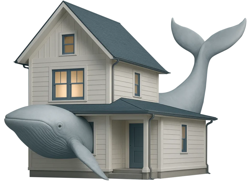 Up to 23% of the composition of an exterior wall assemblies is studs, which are thermal conductors. For A 2000 sqft. detached home that ads up to 500 sqft. of exterior wall is uninsulated! That’s bigger than the size of an adult humpback whale.